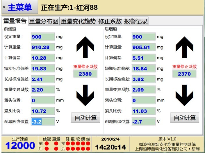 對(duì)GD121卷接機(jī)組的微波重量控制系統(tǒng)的改造方案,采用了平臺(tái)設(shè)計(jì)理念,把重量控制系統(tǒng)以及OPC服務(wù)器集成在一起,同時(shí)又互相獨(dú)立,形成了模塊化的結(jié)構(gòu)。該電控系統(tǒng)采用了IPC加遠(yuǎn)程IO模塊的形式,所有的信號(hào)除必要的前端放大處理以適應(yīng)外圍采集模塊的特性外,其余信號(hào)均直接采用遠(yuǎn)程IO模塊采集,遠(yuǎn)程IO模塊通過(guò)網(wǎng)線同IPC進(jìn)行通信以傳遞相關(guān)的信息,所有的處理程序在IPC中處理,由于遠(yuǎn)程IO模塊體積較小,方便在機(jī)身上找到合適的位置安裝,同時(shí),IPC可以較方便的安裝到任意合適的位置。系統(tǒng)能精確完成單支煙的故障判斷、剔除。通過(guò)工控一體機(jī)觸摸屏進(jìn)行參數(shù)設(shè)置和數(shù)據(jù)采集。良好的人機(jī)界面,易于操作人員進(jìn)行現(xiàn)場(chǎng)控制與維護(hù)。