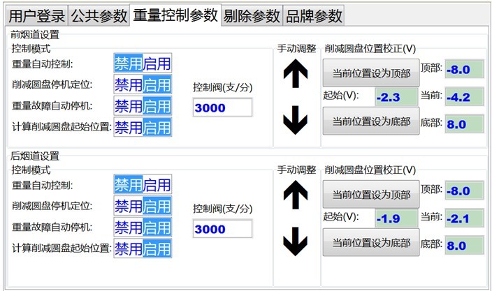煙支取樣及剔除模塊把重量控制模塊傳送過(guò)來(lái)的煙支重量、煙段密度值和IPC上設(shè)定的超重、超輕、軟點(diǎn)、硬點(diǎn)、端部空松剔除閥值做比較,其中任一指標(biāo)如超過(guò)設(shè)定值則該煙視為不合格煙支,如果相應(yīng)剔除功能啟用則把這支煙作為廢品剔除,同時(shí)把剔除煙支數(shù)和相應(yīng)方式傳送到IPC進(jìn)行數(shù)據(jù)統(tǒng)計(jì)。同時(shí)采集原機(jī)的平準(zhǔn)盤(pán)的位置信號(hào)實(shí)現(xiàn)平準(zhǔn)盤(pán)停機(jī)定位等功能。